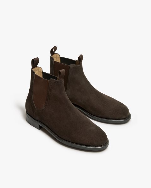 Goodyear welted construction Handcrafted in Portugal Premium water repellent suede from British Charles F. Stead Leather board heel stiffeners and cork filling